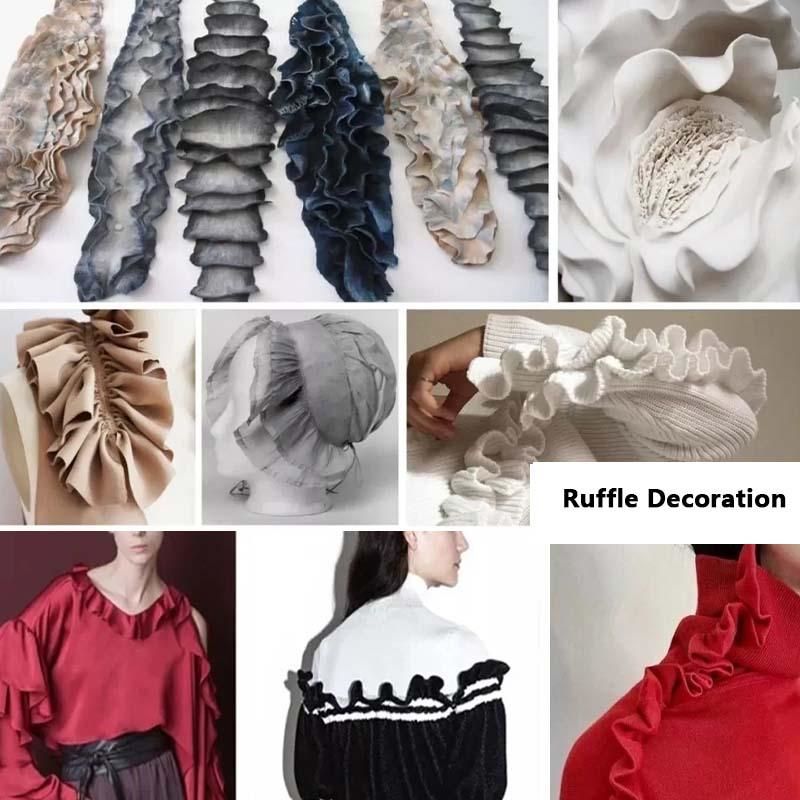 ਕੱਪੜਿਆਂ 'ਤੇ ਸਥਾਨਕ ਫੋਲਡ ਦਾ ਪ੍ਰਭਾਵ ਵੀ ਬਹੁਤ ਵਧੀਆ ਹੈ।ਡਿਜ਼ਾਇਨ ਪ੍ਰਕਿਰਿਆ ਦੇ ਹੌਲੀ-ਹੌਲੀ ਵਿਕਾਸ ਦੇ ਨਾਲ, ਇਹ ਹੁਣ ਇੱਕ ਸਿਲੂਏਟ ਜਾਂ ਸਜਾਵਟ ਦੇ ਤੌਰ ਤੇ ਵਰਤਿਆ ਜਾਂਦਾ ਹੈ, ਅਤੇ ਇਹ ਸ਼ਾਨਦਾਰ ਚਮਕ ਰਿਹਾ ਹੈ.