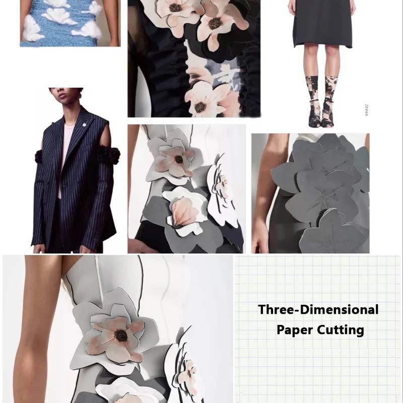 ਤਿੰਨ-ਅਯਾਮੀ ਪੇਪਰ-ਕੱਟ ਵਿੱਚ 3D ਵਿਜ਼ੂਅਲ ਪ੍ਰਭਾਵ ਦੀ ਭਾਵਨਾ ਹੈ, ਜੋ ਕੱਪੜਿਆਂ ਵਿੱਚ ਇੱਕ ਨਵਾਂ ਫੈਸ਼ਨ ਲਿਆਉਂਦਾ ਹੈ।ਪੇਪਰ-ਕੱਟ ਤੱਤਾਂ ਅਤੇ ਤਕਨੀਕਾਂ ਦੇ ਨਾਲ ਆਧੁਨਿਕ ਕੱਪੜੇ ਦਾ ਸੰਯੋਗ ਇੱਕ ਵਿਲੱਖਣ ਆਧੁਨਿਕ ਸੁਹਜ ਬਣਾਉਂਦਾ ਹੈ.